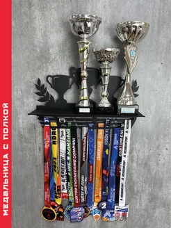 Медальница с полкой для кубков металлическая