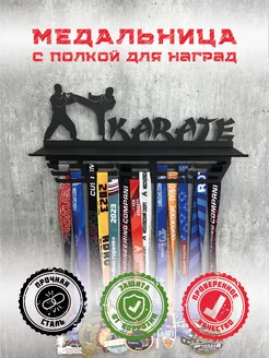 Металлическая медальница с полкой для кубков Карате
