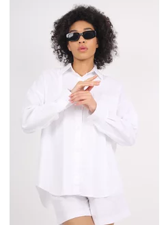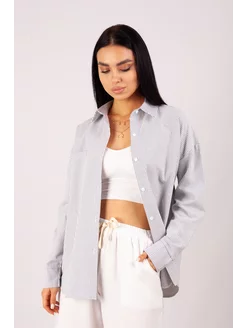 Рубашка оверсайз ХБ в полоску летняя нарядная с рукавом