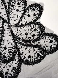 Вышивка черная расшитая бисером и пайетками 0.31м * 1.24м