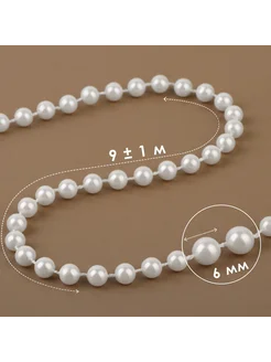 Жемчуг на нитях, круглый, 8 мм, 9±1 м, белый
