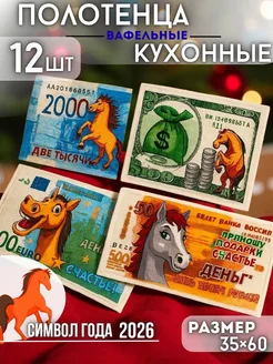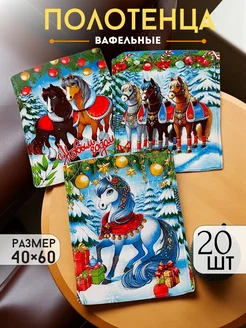 Кухонные полотенца вафельные Символ года 2026 Лошадь 20шт