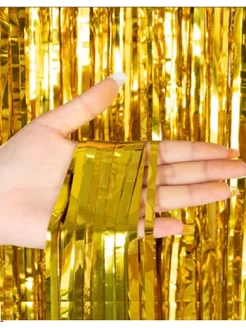 Дождик новогодний золотой для фото-зоны и интерьера 2 метра