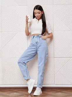 Джинсы бананы мом с высокой посадкой баллоны слоучи