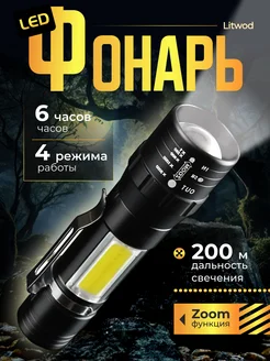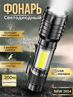Фонарик аккумуляторный ручной светодиодный мощный