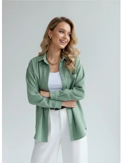 Рубашка белая вельветовая оверсайз в школу и в офис