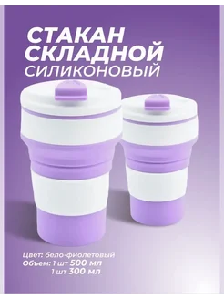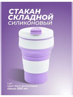 Стакан силиконовый складной, 500 мл, бело-фиолетовый