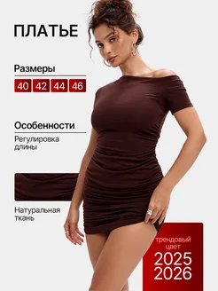 Платье мини осеннее с драпировкой на одно плечо вечернее