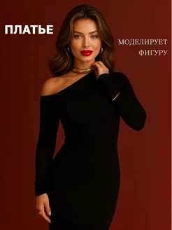 Платье мини осеннее с драпировкой на одно плечо новогоднее