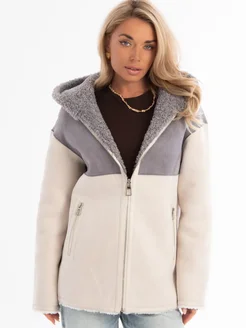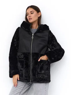 Дубленка зимняя двухсторонняя с капюшоном укороченная