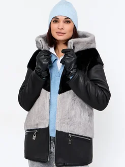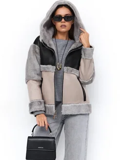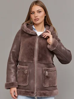 Дубленка зимняя с капюшоном двухсторонняя укороченная