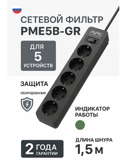 Сетевой фильтр PME5B-GR, 5 розеток, 1.5м