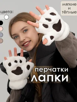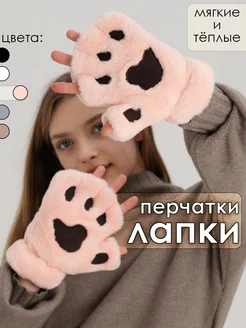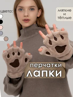 Перчатки лапки митенки детские для девочки модные плюшевые