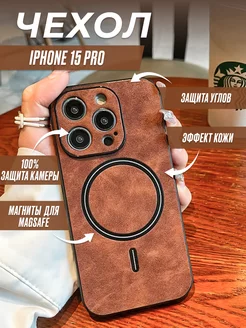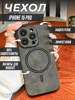Чехол для Iphone 15 Pro кожаный Magsafe