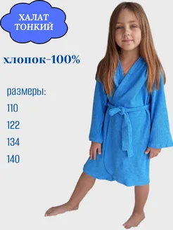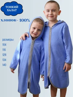 Халат махровый с капюшоном тонкий для детей
