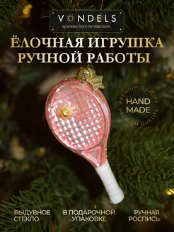 Стеклянная игрушка на елку Розовая теннисная ракетка