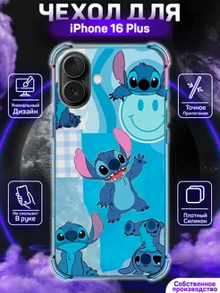 Чехол на iPhone 16 Plus с принтом Стич