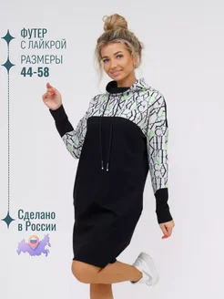 Платье женское худи большой размер миди оверсайз футер принт