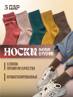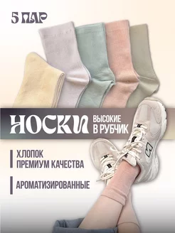 Носки женские высокие набор 5 пар в рубчик хлопок