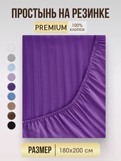 Простынь натяжная на резинке 180х200 страйп сатин