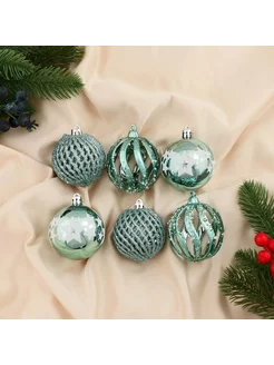 Набор шаров пластик d-6 см, 6 шт "Эстер" сеточка, зелёный
