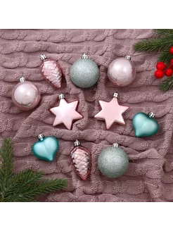 Набор украшений пластик 10 шт "Джоан" розово-зелёный