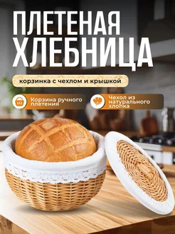 Плетеная Хлебница - корзина с чехлом и крышкой 26*13,5 см