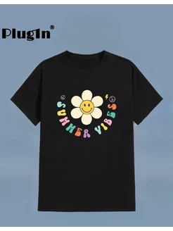Футболка хлопок с принтом Summer Vibes черная