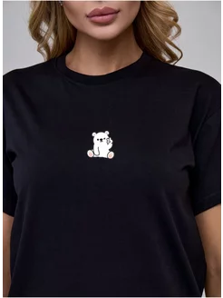 Футболка хлопок с принтом Мишка черная