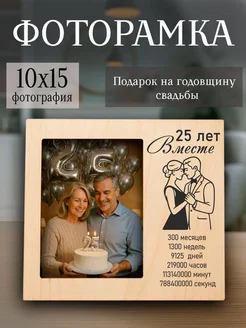 Подарок на годовщину свадьбы 25 лет, фоторамка деревянная