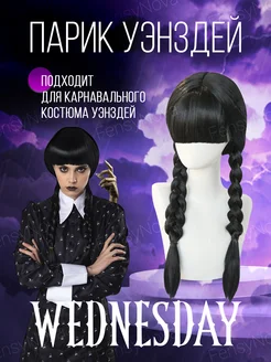 Парик косплей аниме черный уэнсдей Wednesday с челкой