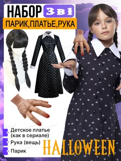 Карнавальный набор 3 в 1. парик, рука, платье уэнсдей