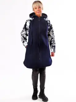 Толстовка женская на молнии с капюшоном удлиненная теплая