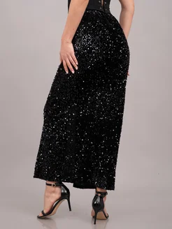 Юбка длинная с пайетками с разрезом