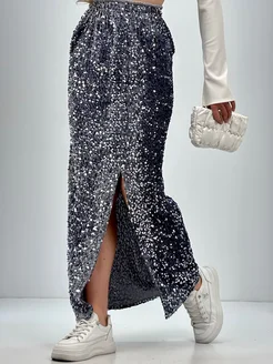 Юбка с пайетками макси с разрезом
