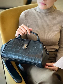 Сумка саквояж женский, кожаный, винтаж
