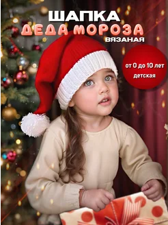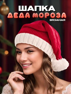 Шапка Деда мороза новогодняя вязаная
