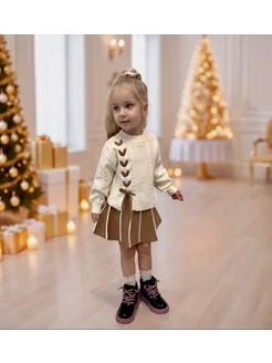 Вязаный костюм с юбкой для девочки