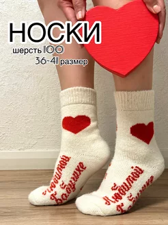 Носки высокие длинные теплые шерстяные с надписью маме