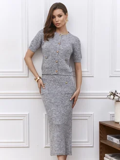 Трикотажный костюм двойка женский летний с юбкой плиссе