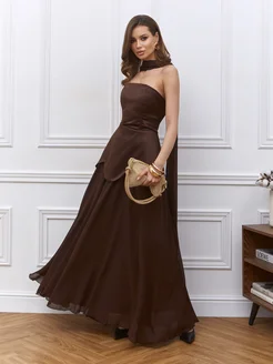 Платье вечернее корсетное макси с длинным шарфом