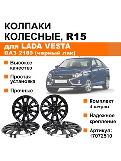 Колпаки R15 Лада Веста, черный лак (4 шт.)