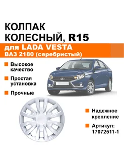 Колпак R15 Лада Веста, серебро (1 шт.)
