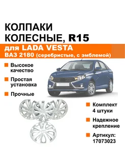 Колпаки R15 Лада Веста ВАЗ 2180 (серебро, ладья, 4 шт.)