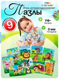 Развивающие деревянные яркие пазлы для малышей, 9 шт