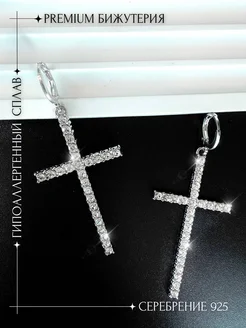 Серьги кресты большие со стразами