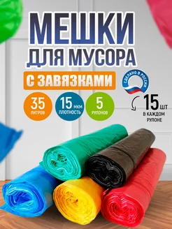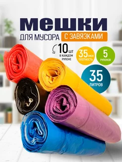 мешки для мусора 35 литров цветные прочные с завязками
