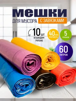 мешки для мусора 60 литров цветные прочные с завязками