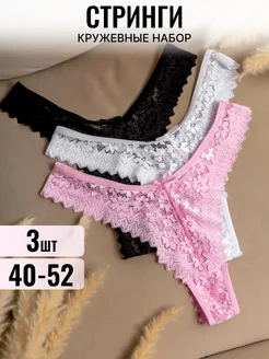 Трусы стринги набор с высокой посадкой кружевные 5 шт
