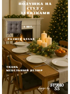 Подушка на стул из серо-коричневого велюра 45х45 - 1шт
